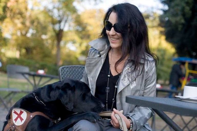 Beh insomma, pratico è una parola grossa! [Ride] In realtà quando si è ciechi la praticità devi averla mentale, nel senso che non puoi distrarti, devi concentrarti, devi ricordare tutto a memoria. Non parlo soltanto della memoria tattile legata a piedi, bastone e mani, ma soprattutto anche della memoria olfattiva e uditiva (capisci in quale luogo sei arrivato dai rumori, da questo odore, da quel suono in terra). Il nostro mondo è privo di ogni cosa che “tu” vedi: se chiudi gli occhi non c’è più niente, c’è un infinito… Abbiamo spesso questa capacità di geolocalizzarci, in base a questo tipo di esperienze sensoriali e percezioni. Ma potrebbe essere molto più semplice se le persone fossero più civili, più attente, se non ti spingessero per entrare per primi, se non scavalcassero il cane guida per passare avanti. Per dirti la mia ultima avventura: oggi sono viva per miracolo perché una Smart ha frenato a un centimetro di distanza da me e Isik [si pronuncia Iscìk, che in turco significa “luce”, il nuovo cane guida di Laura], all’interno c’era una ragazza al cellulare!!